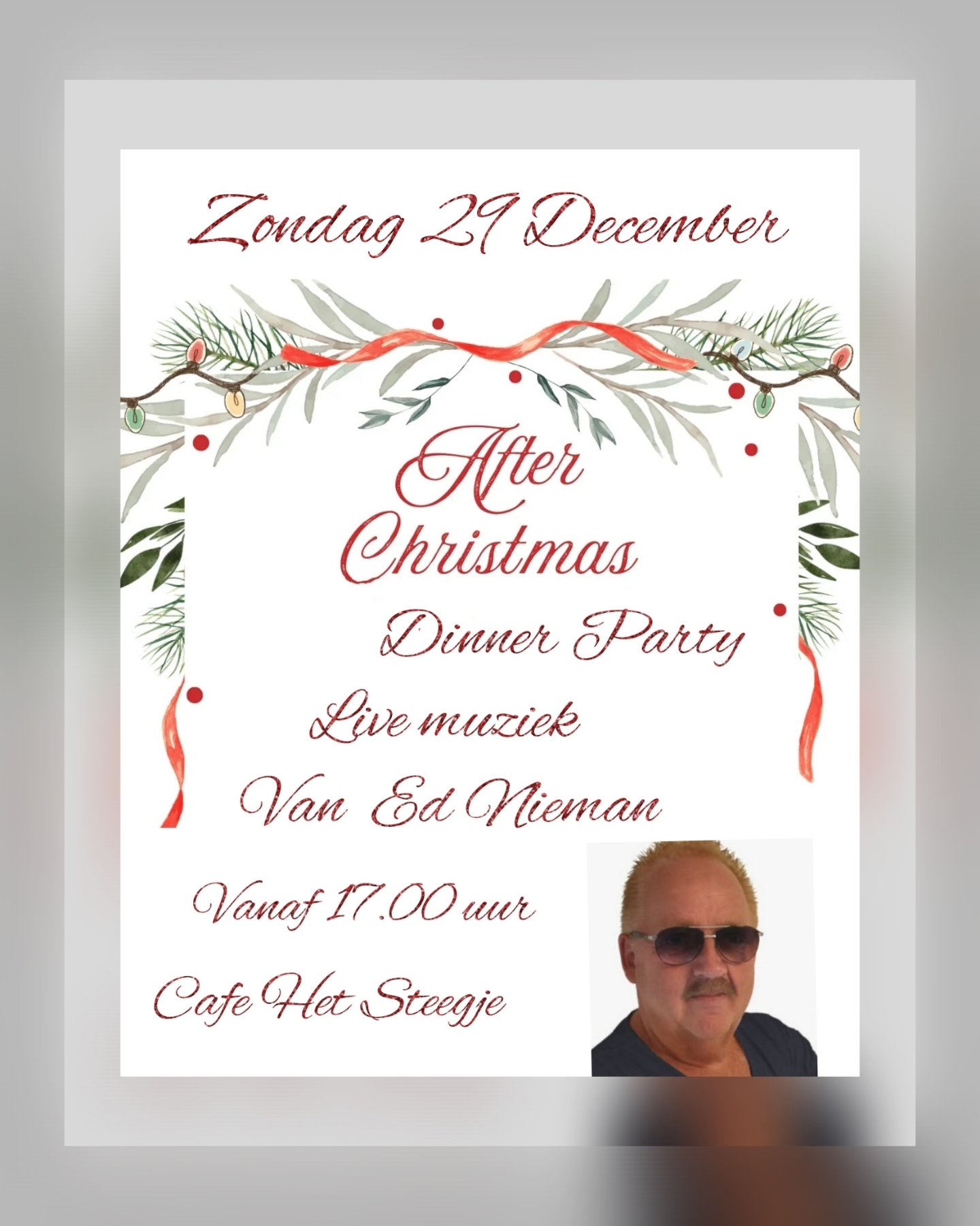 Wil je weer heerlijk dineren met live muziek van Ed Nieman, dat kan je reserveren bel 036-8484279 of pb Café het steegjeBaltimoreplein 7almere netherlands