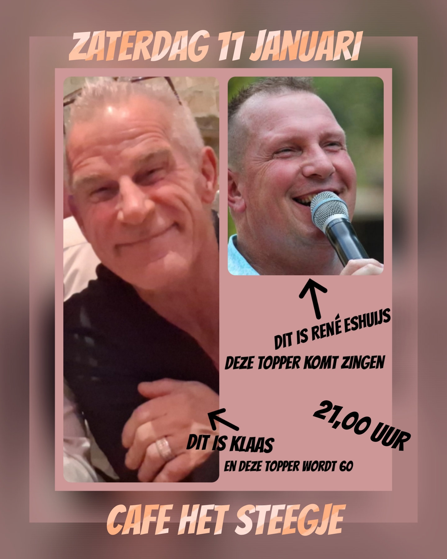 Dit wordt weer een gezellig feestje klaas wordt 60 jaar jong en René eshuijs komt zingenCafé het steegjeBaltimoreplein 7almere netherlands